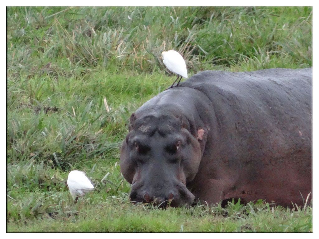 Debout avant 6heure pour un petit Game Drive dans le parc Amboseli dès potron minet. Quelques hyènes et des hippopotames{...}