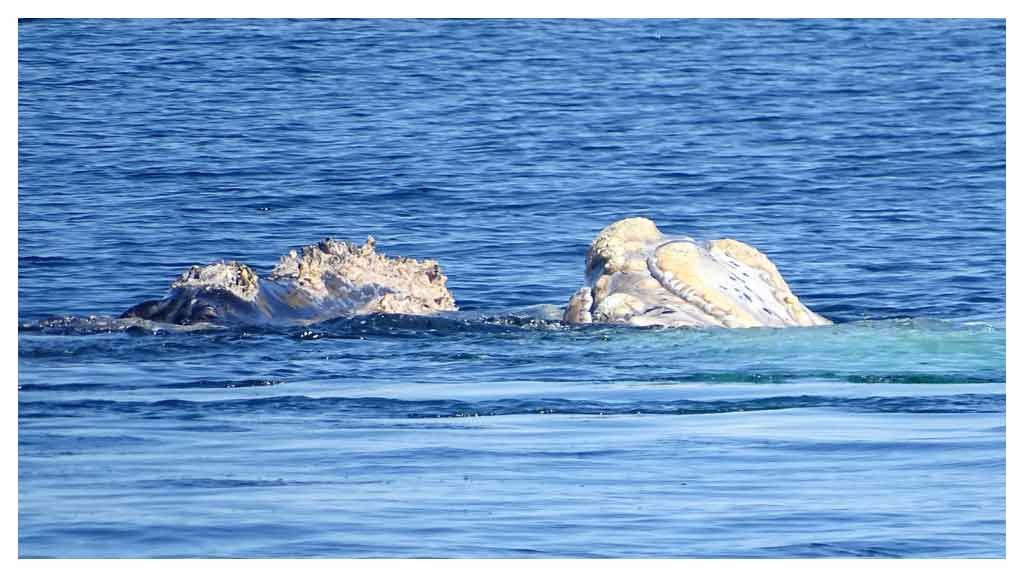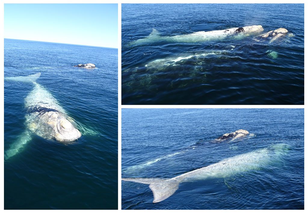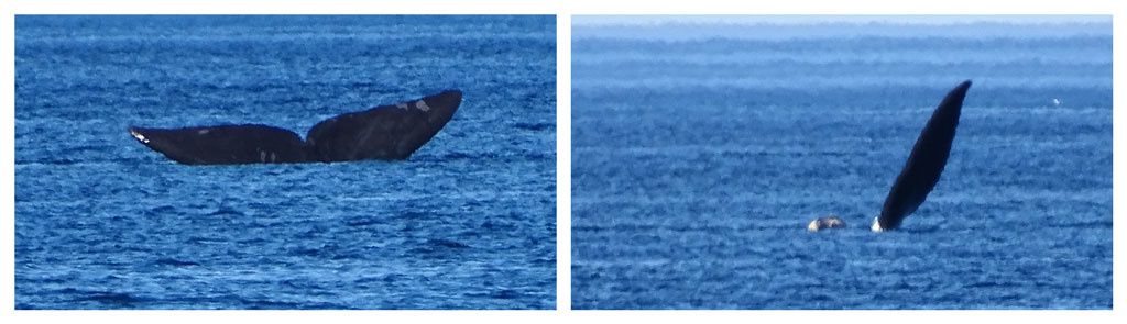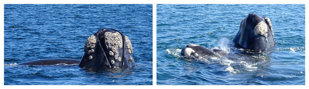 Après les baleines à bosse en Nouvelle-Calédonie, les baleines franches australes. Beaucoup plus sociables, elles s’approchent tout près, tournent autour du bateau, passent en dessous, pour notre plus grand bonheur :)))