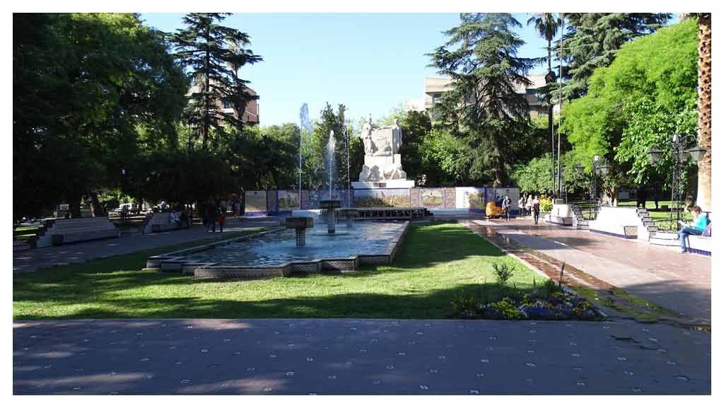 Mendoza, ville verte et ombragée au milieu d’un paysage très aride. Les rues sont bordées par de grands arbres, ce qui est très appréciable vu la chaleur qui y règne et la force du soleil.