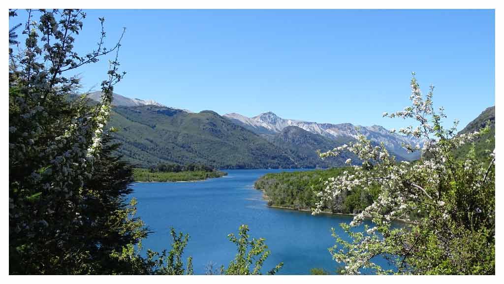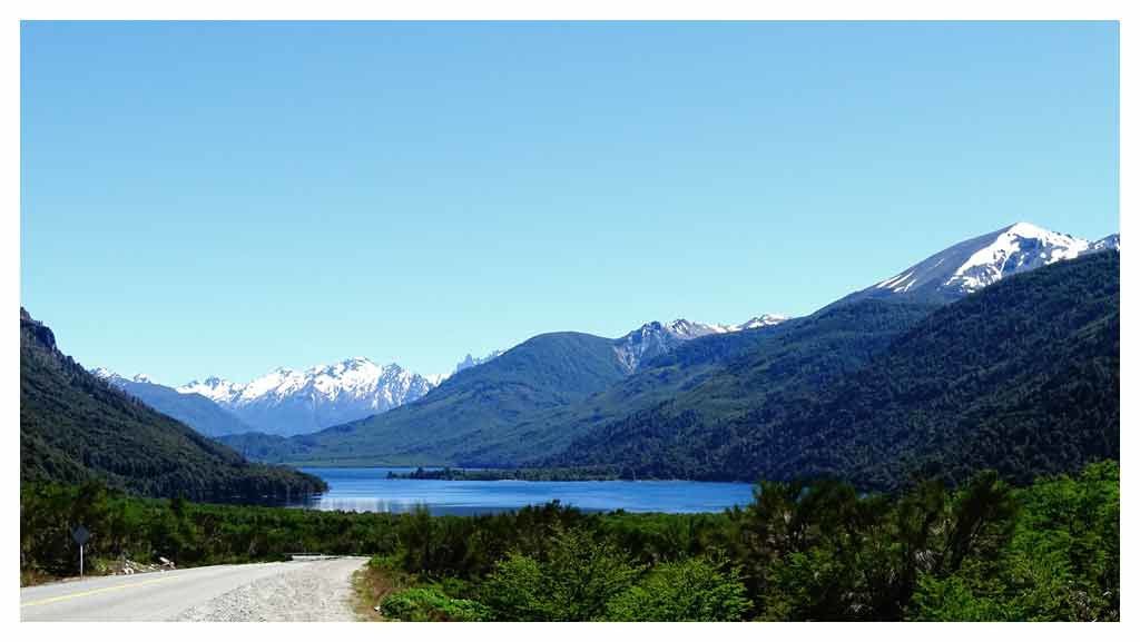 Changement drastique du paysage. La pampa aride s’étendant à perte du vue et les cours d’eau à sec ont laissé place aux forêts, aux torrents et aux lacs, avec une végétation luxuriante de printemps et toujours de superbes montagnes enneigées mêmes si la plupart des sommets ne dépassent pas les 3000.