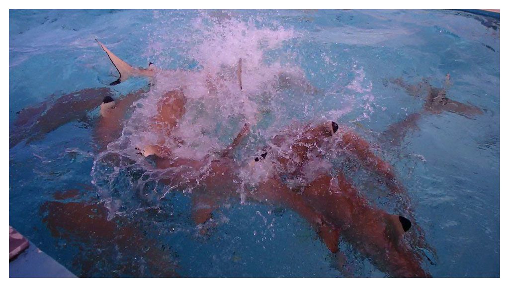 Une fois tout le monde à l’abri dans le bateau, Bruno, notre guide, balance du thon rouge et les requins aiment vraisemblablement ça.
