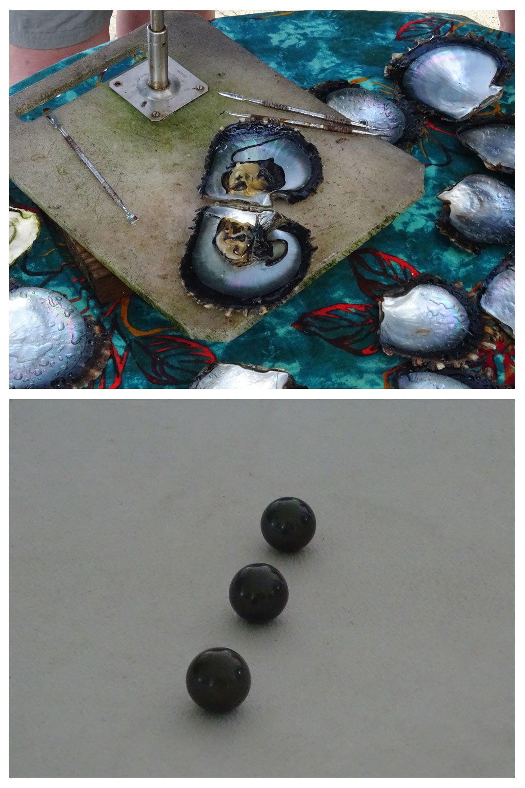 Prochaine étape, une ferme perlière où on nous montre la mise en place d’un nucléon créé à partir de coquillage et du greffon issu d’une huître. Cette dernière est choisie pour la couleur de l’intérieur de sa coquille qui donnera sa couleur à la future perle.