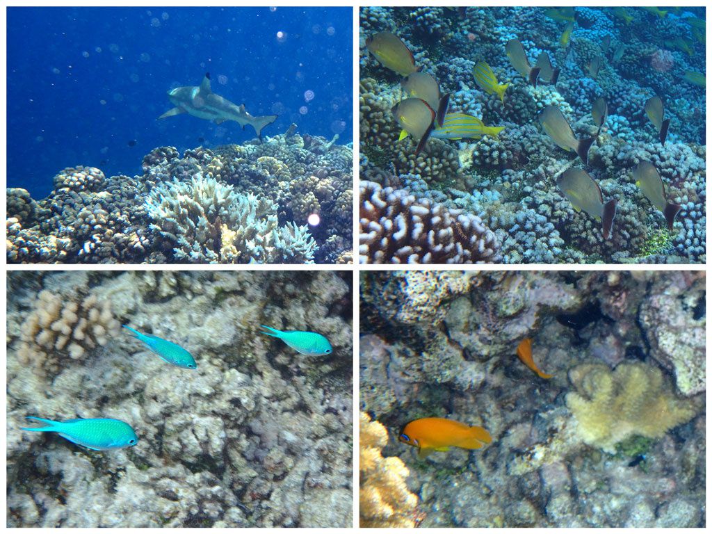 Encore les Tuamotu et on vous a garder le meilleur pour la fin… Même si on ne l’a pas fait exprès 🙂 Direction la passe Tumakohua près du village de Tetamanu, biosphère protégée et classée par l’UNESCO, à 1h30 de bateau de Rotoava. C’est long, mais ça vaut vraiment le coup : un cadre idylique, une barrière de corail haute en couleurs et une faune extraordinaire tant sur le plan densité que diversité, font de ce spot un paradis pour le snorkeling mais aussi la plongée. Pour nous, le meilleur snorkeling en Polynésie !!!