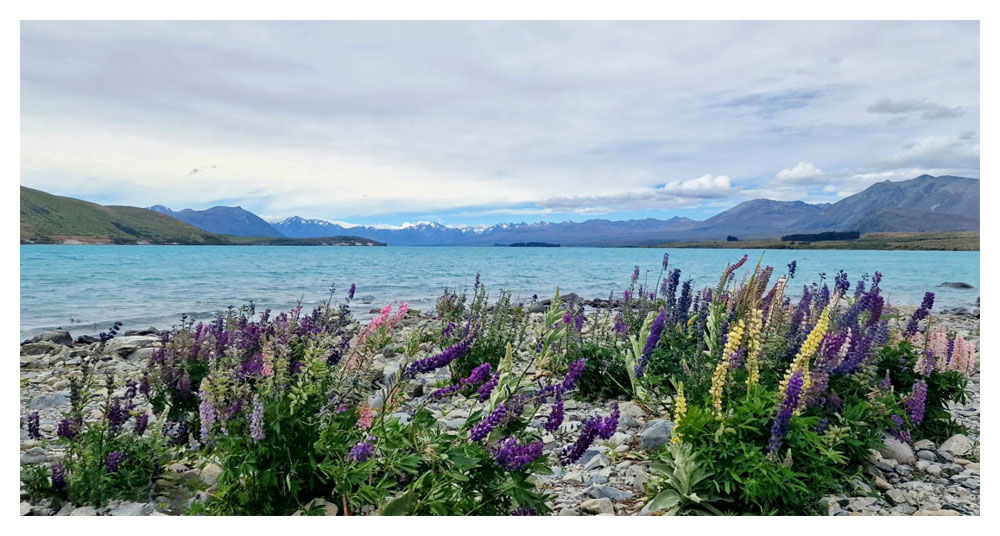 Le lac Tekapo et ses lupins en fleur… et oui, ici c’est l’été 😎