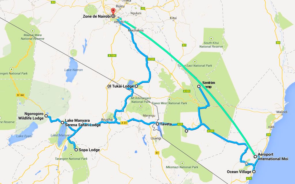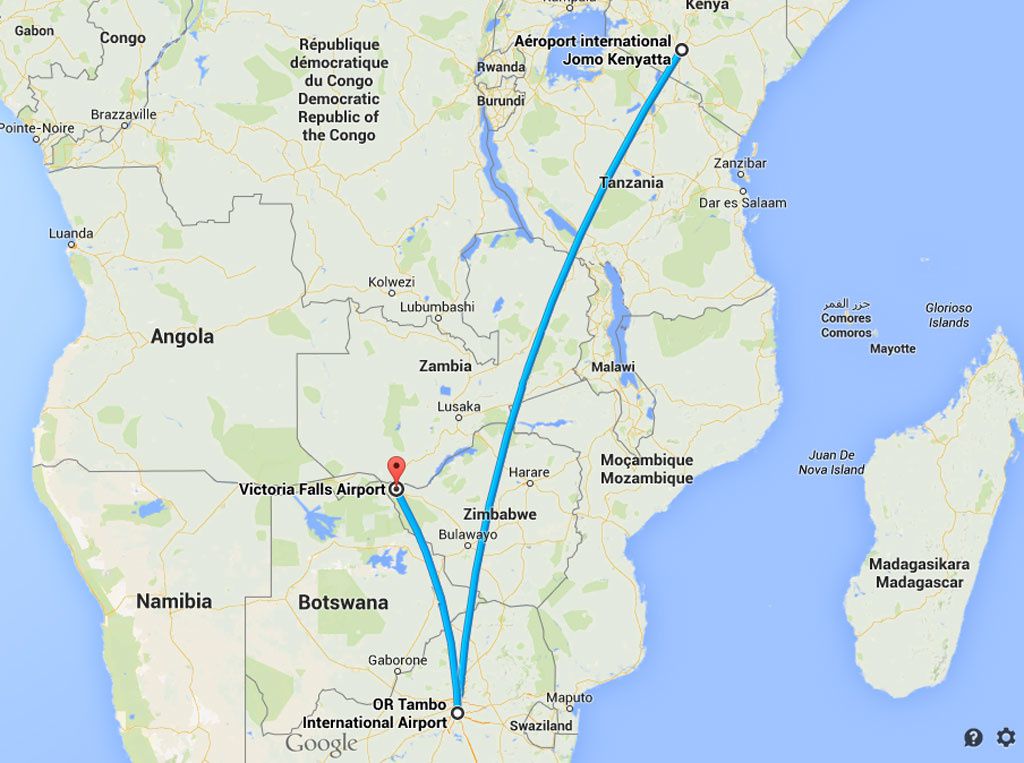 L’arrivée à l’aéroport Jomo Kenyatta de Nairobi est prévu à 6h25 le lendemain.